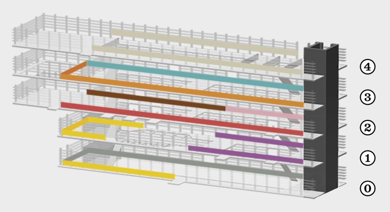 Each zone of the map below corresponds to a specific color that you will find on the shelves. You can explore the details of the classification system further on.
